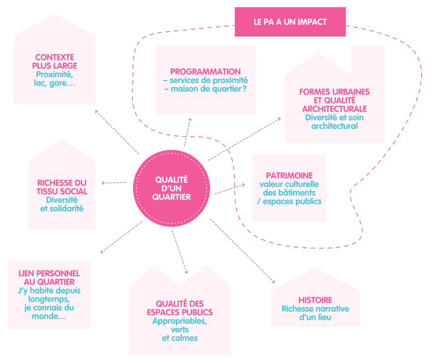 Éviter l’uniformisation : En fixant des règles architecturales spécifiques à chaque type de forme urbaine et en priorisant la transformation des bâtiments existants plutôt que les projets impliquant une démolition/reconstruction, le PA souhaite amener des solutions « sur mesure » pour que chaque quartier ou « bout de quartier » puisse évoluer selon ses caractéristiques propres.