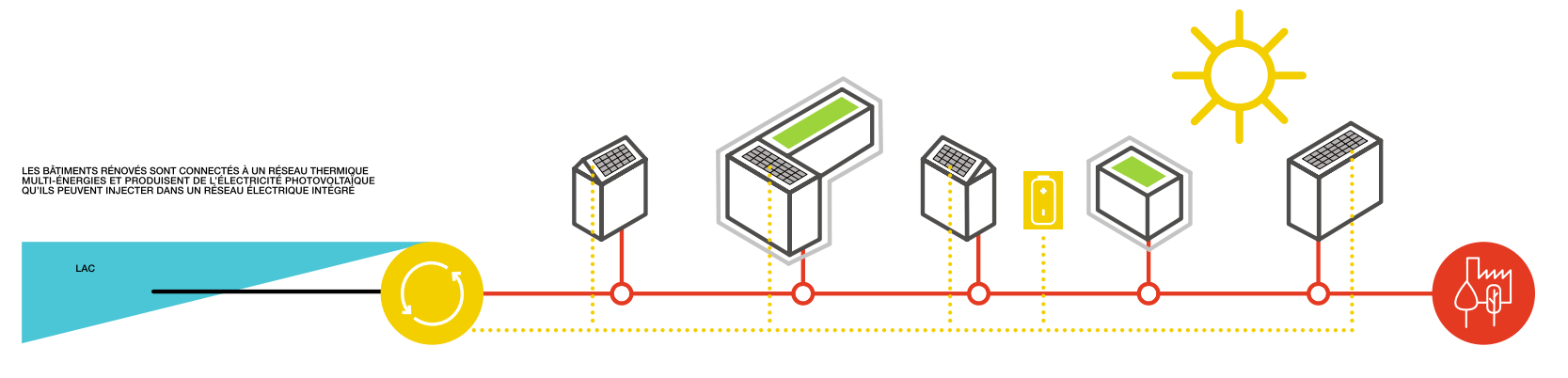 Pour une ville densément bâtie comme Vevey, les réseaux thermiques constituent l’un des seuls moyens d’acheminer de l’énergie renouvelable sous forme de chaleur au cœur de la cité. En effet, les réseaux thermiques permettent de centraliser la production d’énergie renouvelable à l’endroit où elle est facilement exploitable et ensuite d’acheminer la chaleur via des conduites jusque dans les bâtiments. Selon la Planification énergétique territoriale (PET), ces infrastructures devront couvrir 60% des besoins thermiques du territoire en utilisant des ressources locales afin d’atteindre les objectifs du Plan climat.